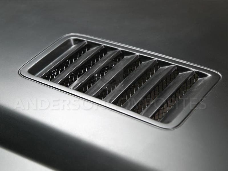 Type-SN (Super Snake Style) fiberglass hood for 2015-2016 Ford Mustang. Its mesh screen is removable and paintable. It mounts with OE hardware. It requires hood pins for safety reasons. Heat shield required. Anderson Composites does not suggest re-installing gas shocks/dampers/struts. The use of a hood prop rod is highly recommended. Always carefully close a composite hood. Slamming or dropping the hood may cause it to crack. Modifications may be necessary for correct fitment of the O.E. windshield washer spray nozzles and fluid lines as part of the normal installation process.