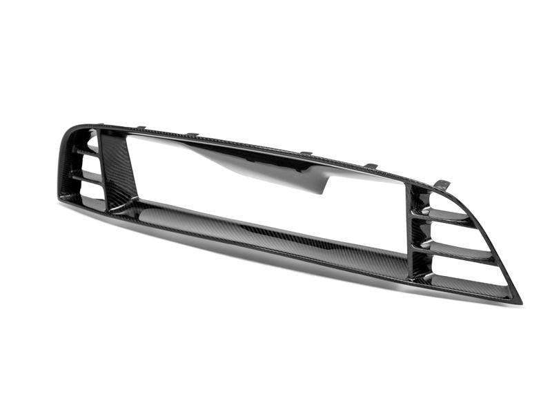 2010-2014 OEM-style carbon fiber front upper grille fits 2010-2014 Ford Mustang Shelby GT500 with or without the location for an emblem. It also fits 2013-2014 Mustang GT/V6. Mounting tabs may require modifications for correct fitment; minor adjustments may be necessary as part of the normal installation process.