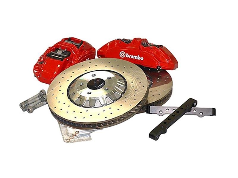 - Brembo 6-piston Gloss Red aluminum fixed front calipers