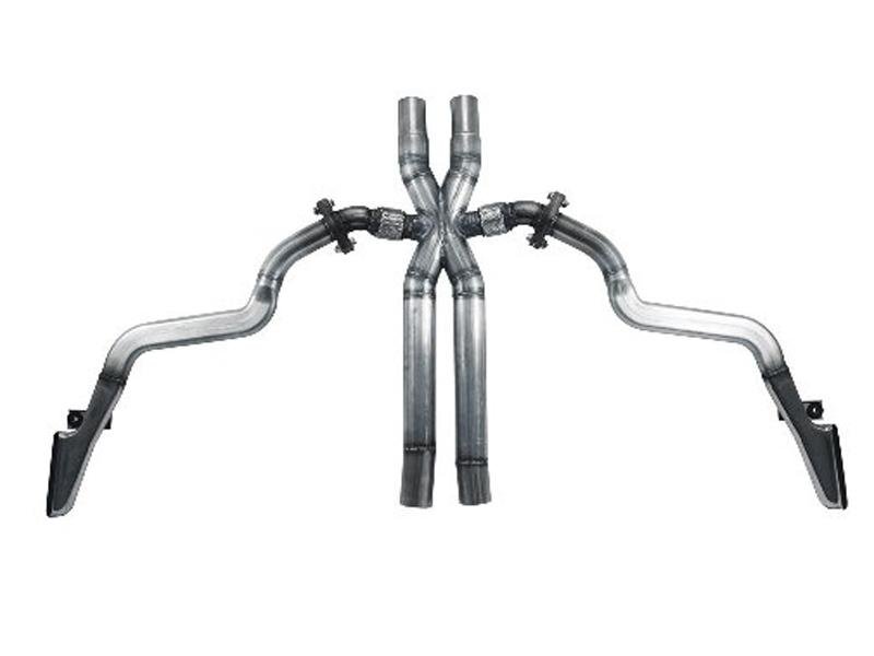 - Kit includes left and right side exhaust pipes with polished 304 stainless steel tips, 409 stainless steel X-pipe and mounting hardware