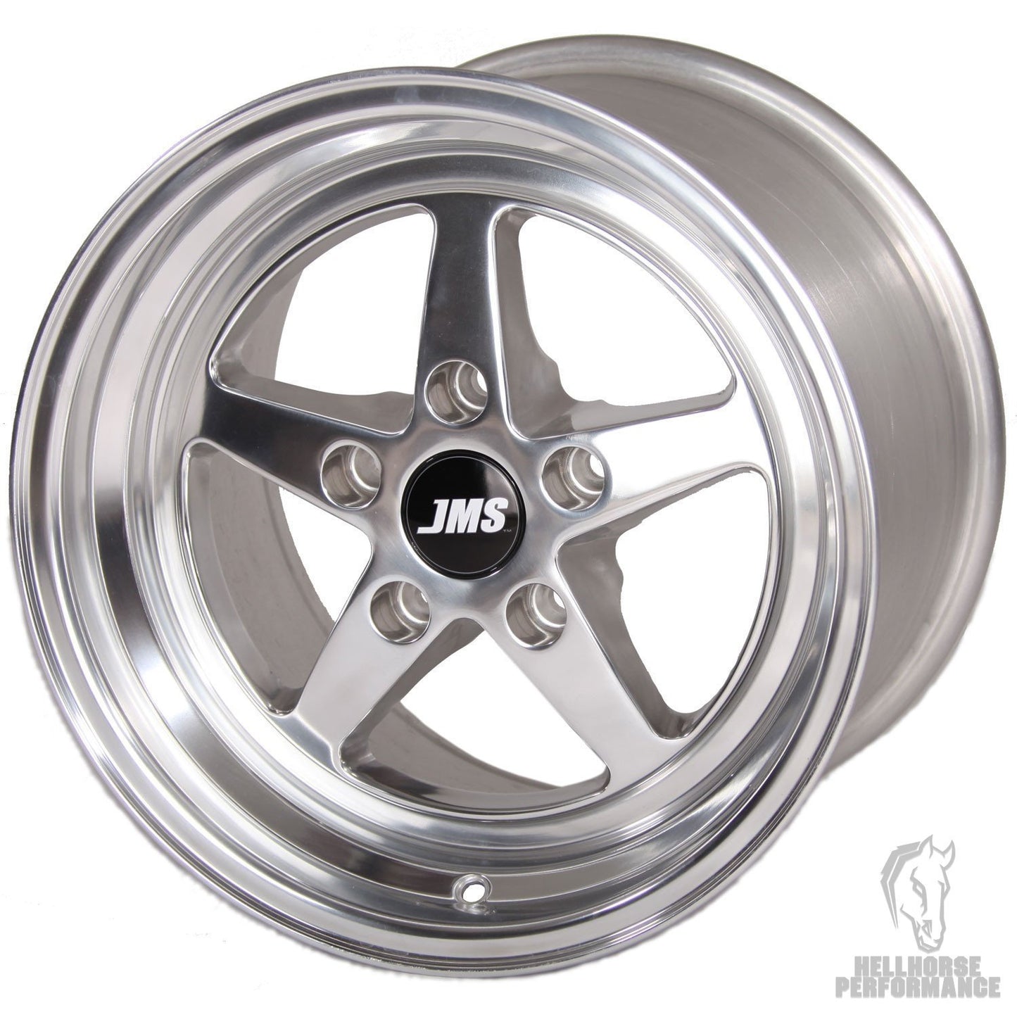 | Rear Wheel fits: 2005-2014 Mustang GT/V6/Boss & 2007-2012 Shelby GT500, Hub-Centric, Direct-Fit, Includes Lug-Nuts, JMS Avenger Wheel, Aluminum, Polished, 15 inch x 10 inch, 5 x 4.50 Bolt Circle, 7.21 inch Backspace | |