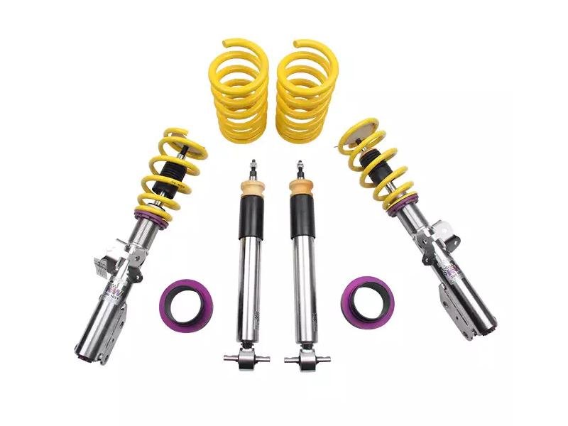 Race technology for the road, with adjustable compression and rebound dampening. State of the art motorsport technology enables better performance on the streets. The independently adjustable compression and rebound dampening allow for custom driving setups. The exclusive KW patented system has dual level valves that allow for adjustment of the rebound dampening for your road comfort and the compression dampening that controls the driving dynamics.
