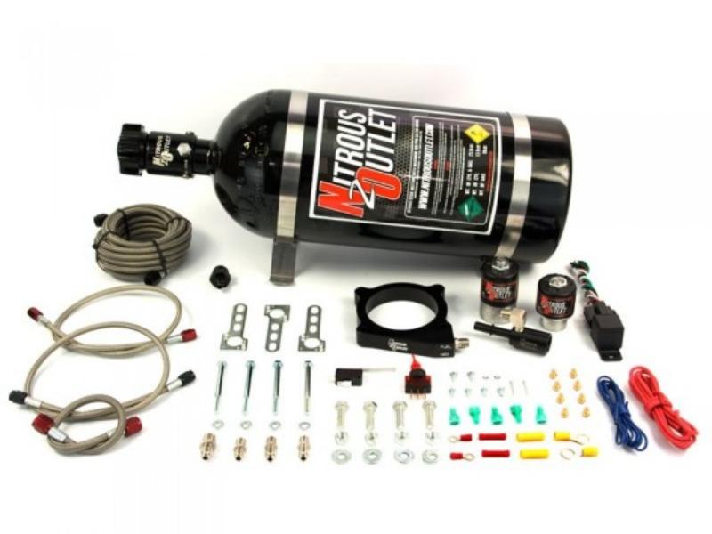 The Nitrous Outlet 2011+ Ford Mustang GT plate system includes jets for 50, 100, 150, and 200HP. This system is capable of spraying up to 400HP. Additional jetting is sold separately.